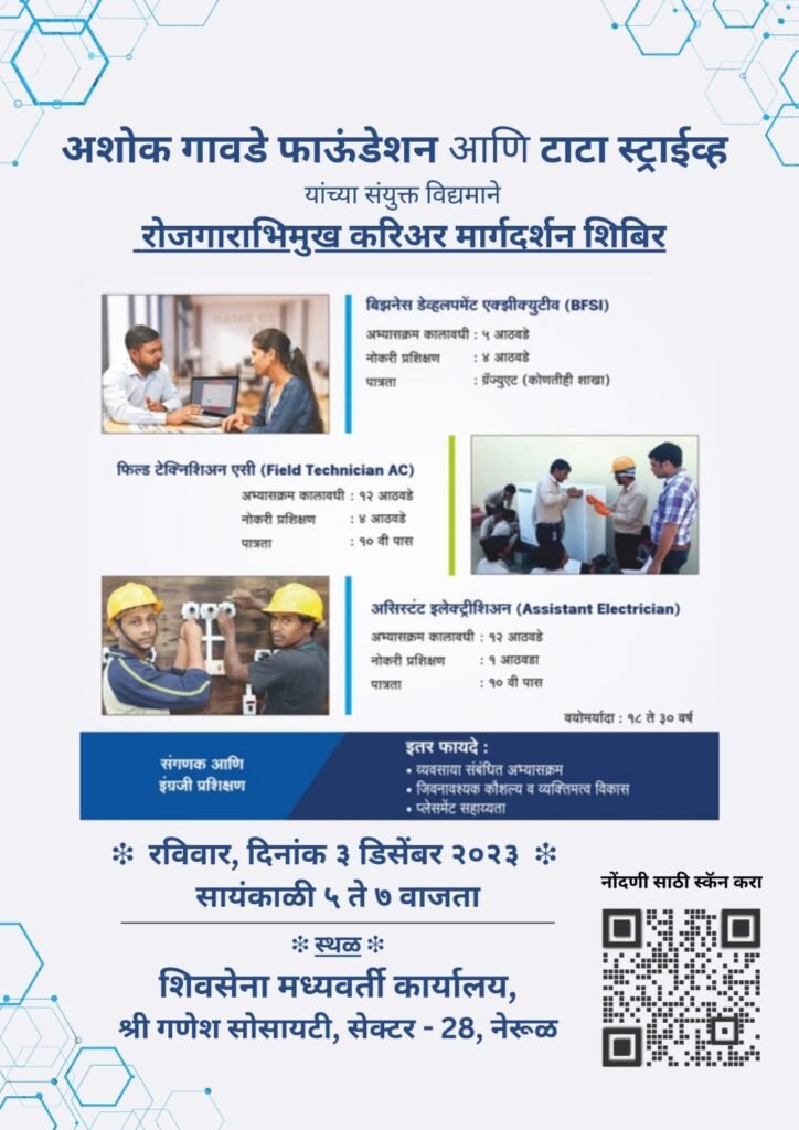 अशोक गावडे फाउंडेशन आणि टाटा स्ट्राइव्ह यांच्या संयुक्त विद्यमाने रोजगाराभिमुख करिअर मार्गदर्शन शिबिर….!